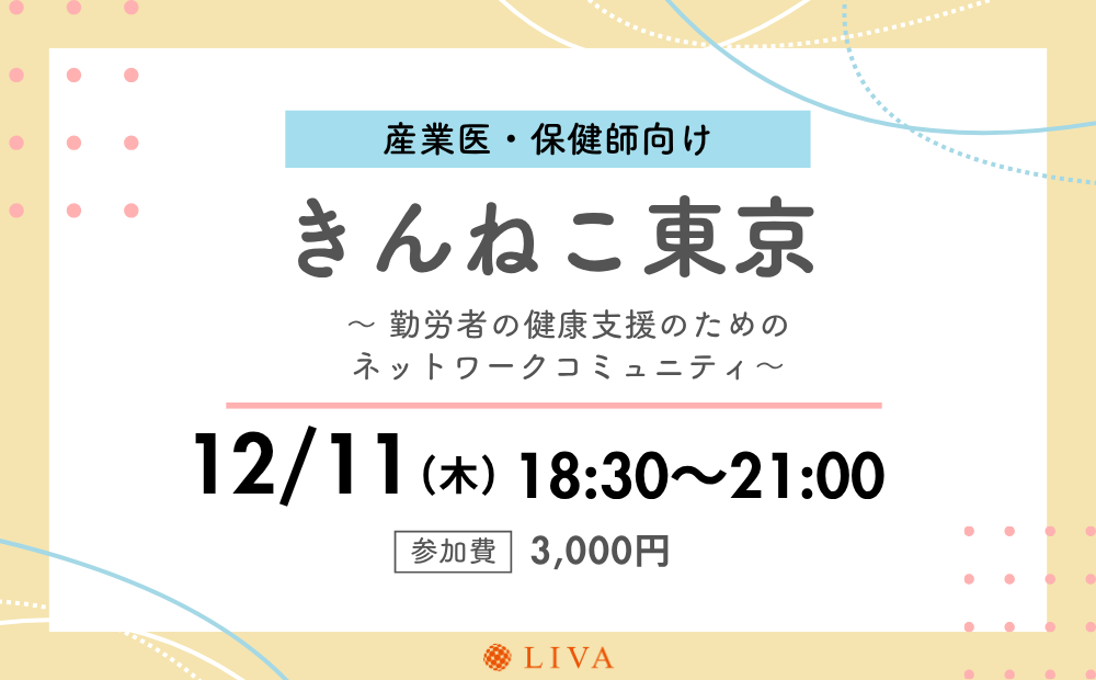 そんな産業保健に携わる方々が繋がりあう場を提供したいとの思いから、勤労者の健康支援のためのネットワークコミュニティ、略して「きんねこ」を企画いたしました。