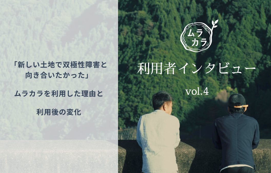 兵庫県から奈良県下北山村に来て、ムラカラを8か月間利用した20代のDさん。双極性障害の当事者であり、利用前は病院のリワークに通っていました。