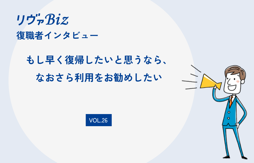 私自身、いずれ復帰できるだろうという気持ちはあったが、リヴァBizを利用することで更に復帰が遠くなるのではという焦りがあり、実際皆さんも同じような気持ちだと思う。でも自分自身がリヴァBizを利用した今言えることは、「利用して後悔することは絶対にない」と断言できる。