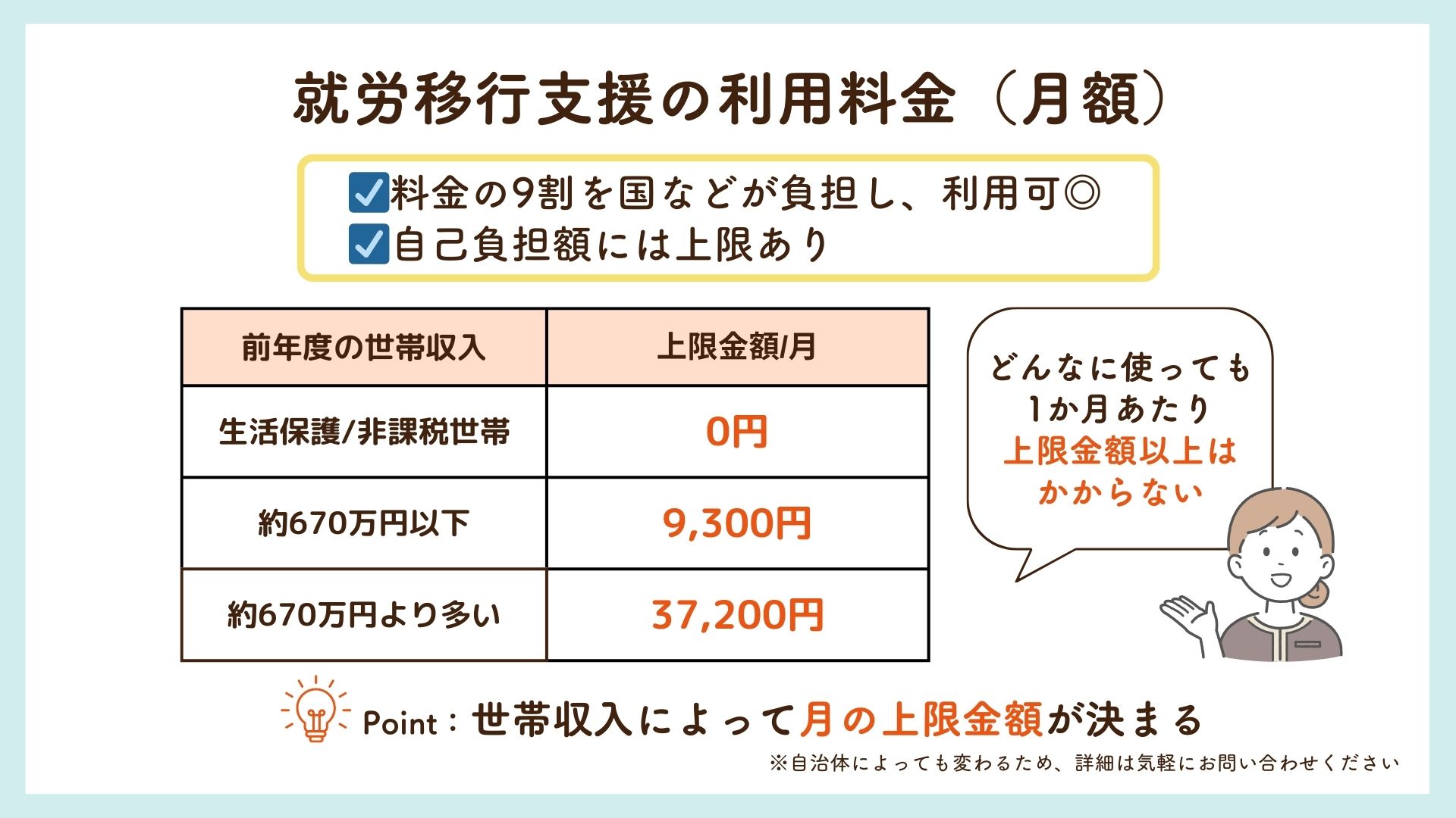また、利用料金は原則1割負担ですが、世帯所得に応じて月額上限が決められています。生活保護世帯や非課税世帯は無料、住民税を支払っている一般世帯でも数千円から1万円程度で利用できるケースが多いです。