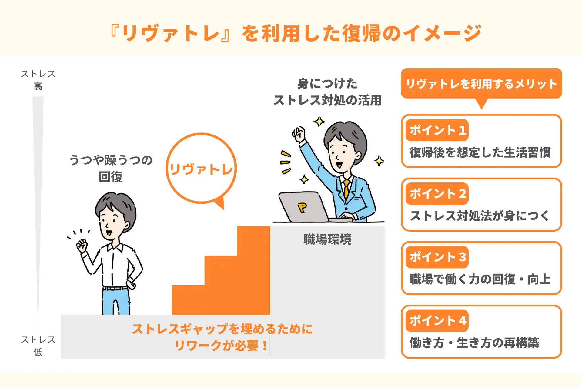 もちろん、復帰後に安定して働き続けるための「生活習慣の土台づくり」や、再発を防ぐための「実践的な準備」を行うプログラムもしっかりと整っています。