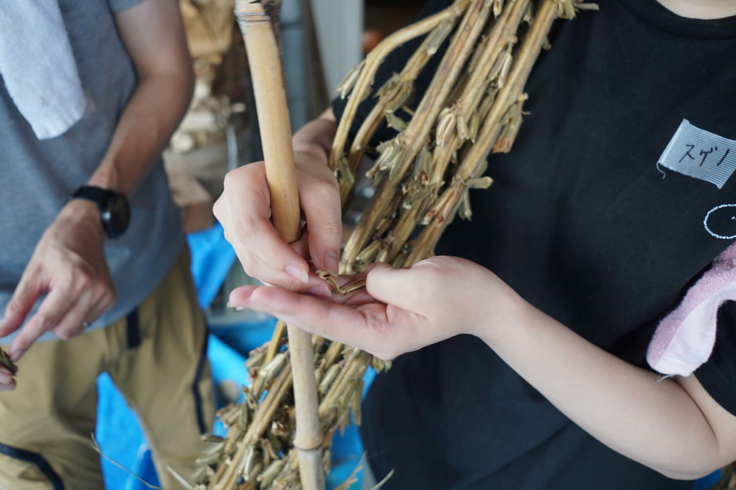 ひと休みした後は、次の作業へ。この日、特に感動したのが「ゴマの収穫体験」でした。