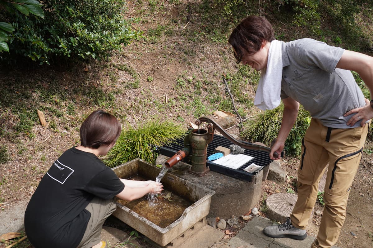 一通り収穫を終えて休憩をしていると、「あそこの井戸水で涼んでいって」と石坂さんが声をかけてくれました。