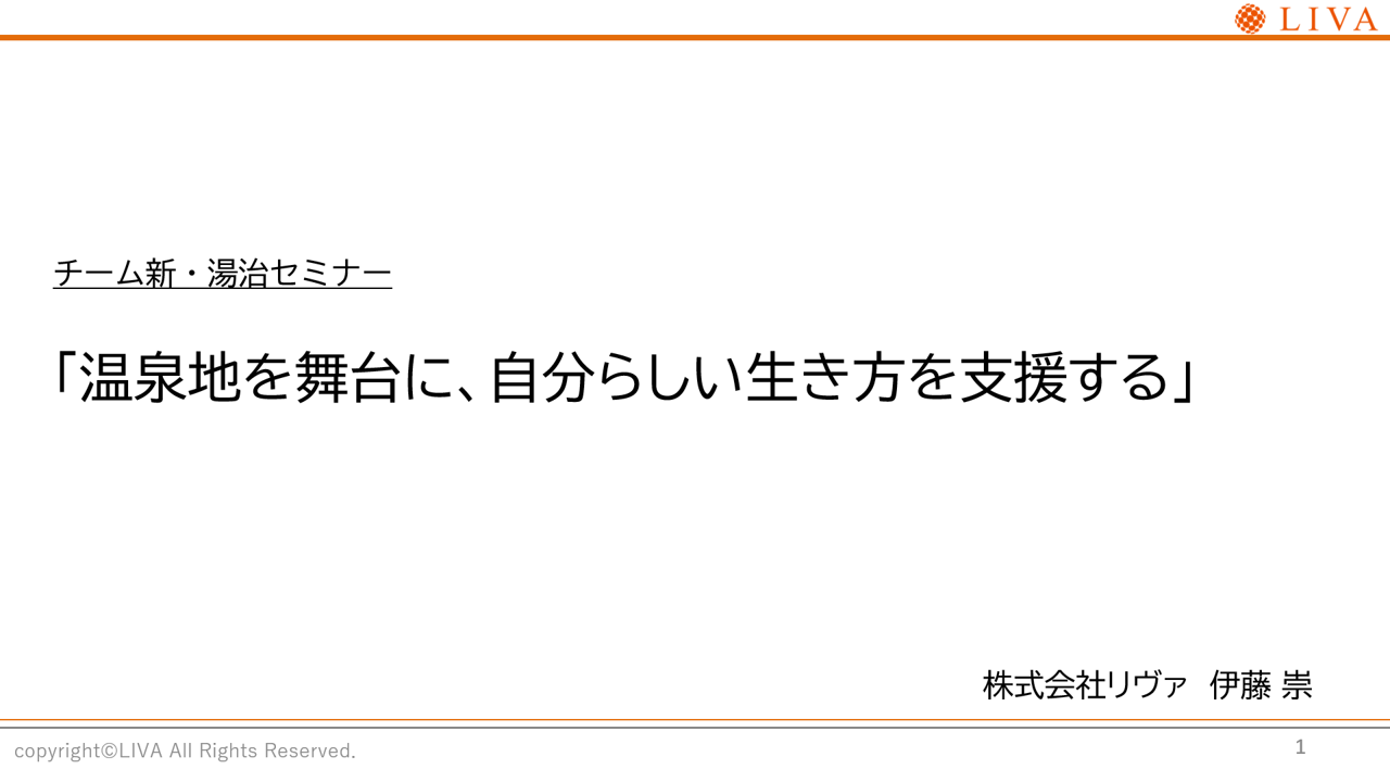 発表タイトル「温泉地を舞台に、自分らしい生き方を支援する。」