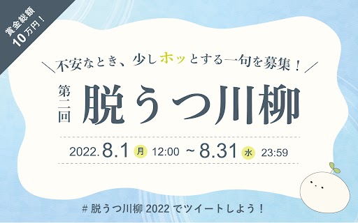 第一回脱うつ川柳コンテストでは予想を遥かに上回る反響をいただき、3006作品が集まりました。「また開催してほしい」という声も多数いただき、当社としてもこの取り組みを継続したい想いがあったことから、第二回を開催する運びとなりました。