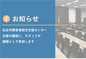 仙台市障害者就労支援センター 主催の講座に、スタッフが 講師として参加します