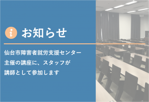 仙台市障害者就労支援センター 主催の講座に、スタッフが 講師として参加します