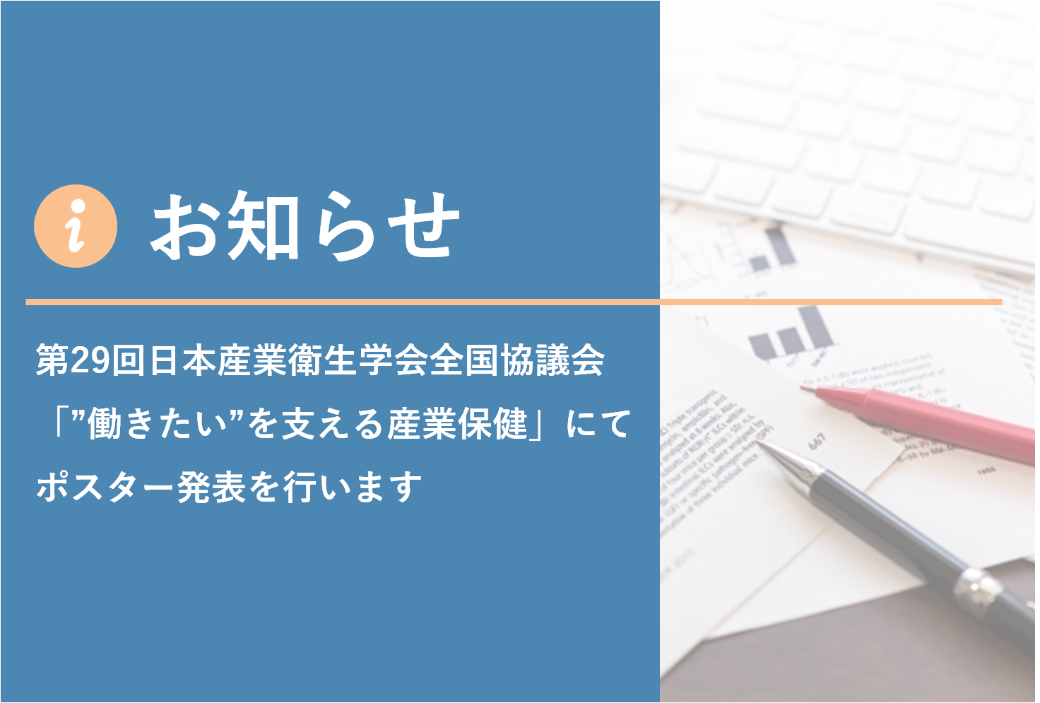 お知らせ 2019.09.11 【リヴァトレ仙台】第29回日本産業衛生学会全国協議会「”働きたい”を支える産業保健」にてポスター発表を行います リヴァトレ仙台 シェア Tweet 令和元年9月13日(金)、仙台国際センターにて開催される第29回日本産業衛生学会全国協議会「”働きたい”を支える産業保健」にて、リヴァトレ仙台センター長の吉田が、メンタルヘルス分野のポスター発表を行います。 【参考サイト】 ◆ 第29回日本産業衛生学会全国協議会についてはこちらから ◆ リヴァトレ仙台についてはこちらから リヴァトレ仙台 この記事をシェアする シェア Tweet