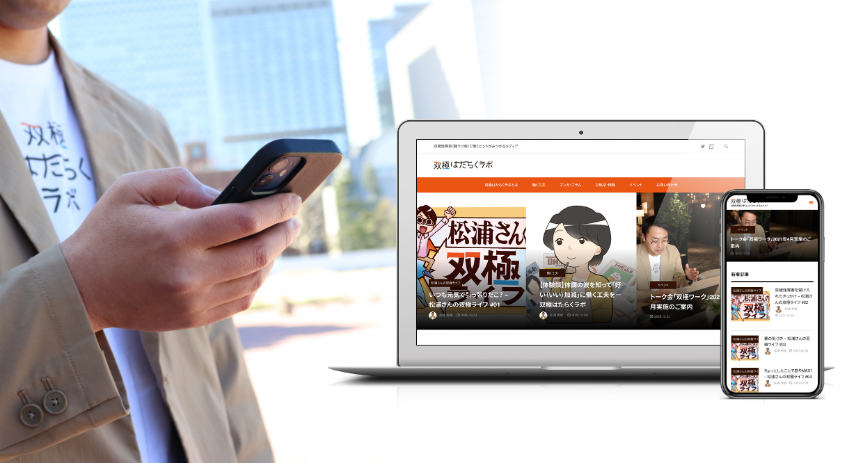 双極はたらくラボは、当事者の方々にとって働き続けるための参考やヒントとなり、また周囲の人にも役立つ情報を提供していきます。