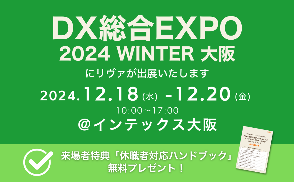 この度、2024年12月18日(水)~20日(金)の期間、インテックス大阪にて開催されるDX総合EXPO[2024 WINTER 大阪]内「人事・労務DX EXPO」に出展いたします。