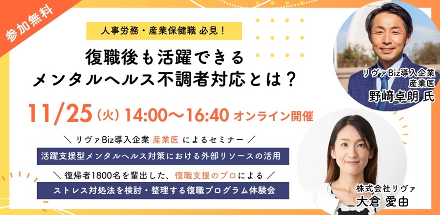 この度株式会社リヴァ主催で、産業保健職・人事労務の方向けにオンラインイベントを開催いたします。