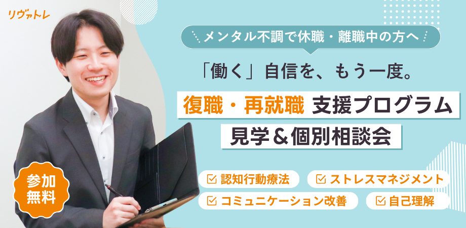 そんな方々に向けて、復職・再就職に向けた準備を行うリヴァトレの見学&個別相談会をご用意しました。