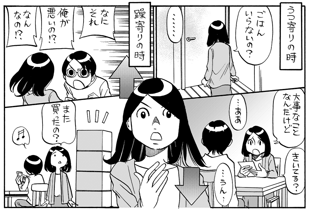 うつと軽躁で驚くほど様子が異なることに圧倒され、気付けば私まで夫のアップダウンに巻き込まれていました。そして、自分の対応が適切なのか自信が持てないまま、不安な毎日を過ごしていたのです。