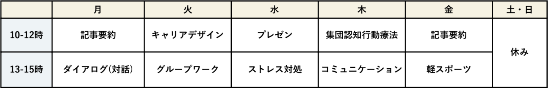 開始時は午後のみなど、自分の心身のコンディションに合わせて通所できます。