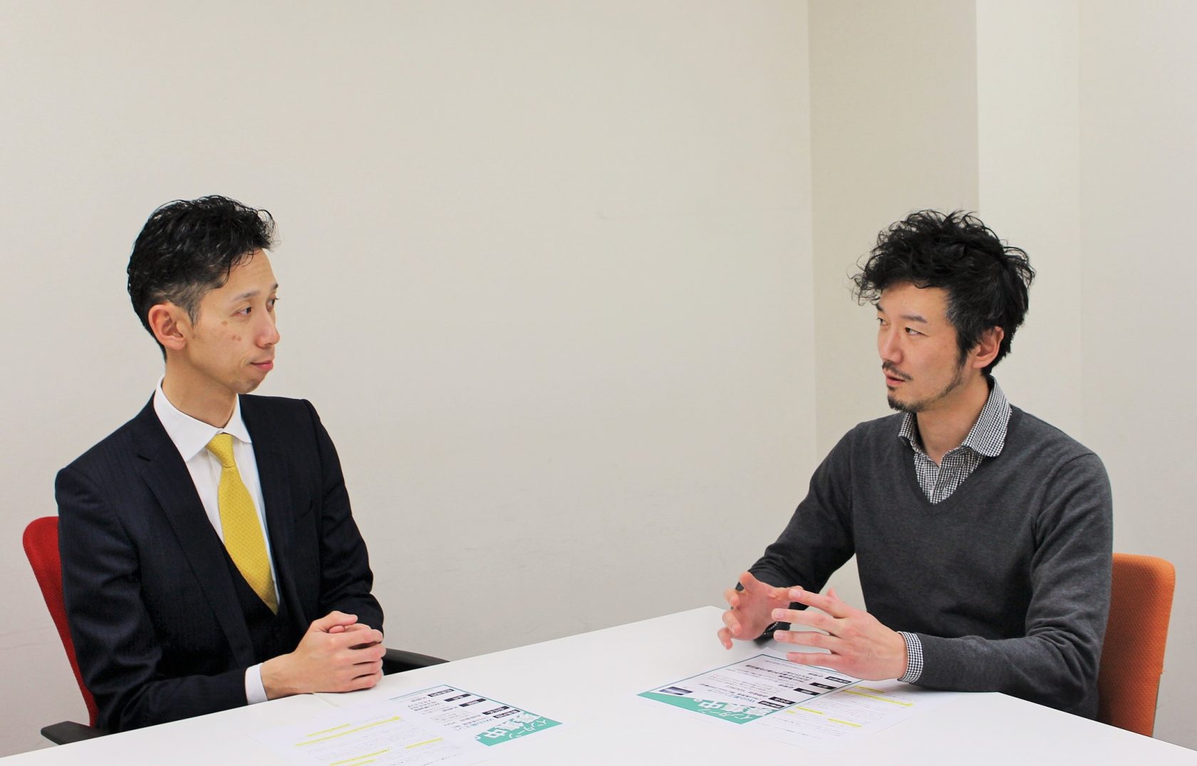 うつ病などを経験したことのあるエンジニアを在宅ワーカーとして積極的に雇用されている合同会社鷹睡(ようすい)。リヴァトレ利用者Mさんが就職したことをきっかけに、代表である豊福良太さん(写真左)とリヴァ代表 伊藤崇(写真右)が対談し、インターンの事例について意見を交わしました。