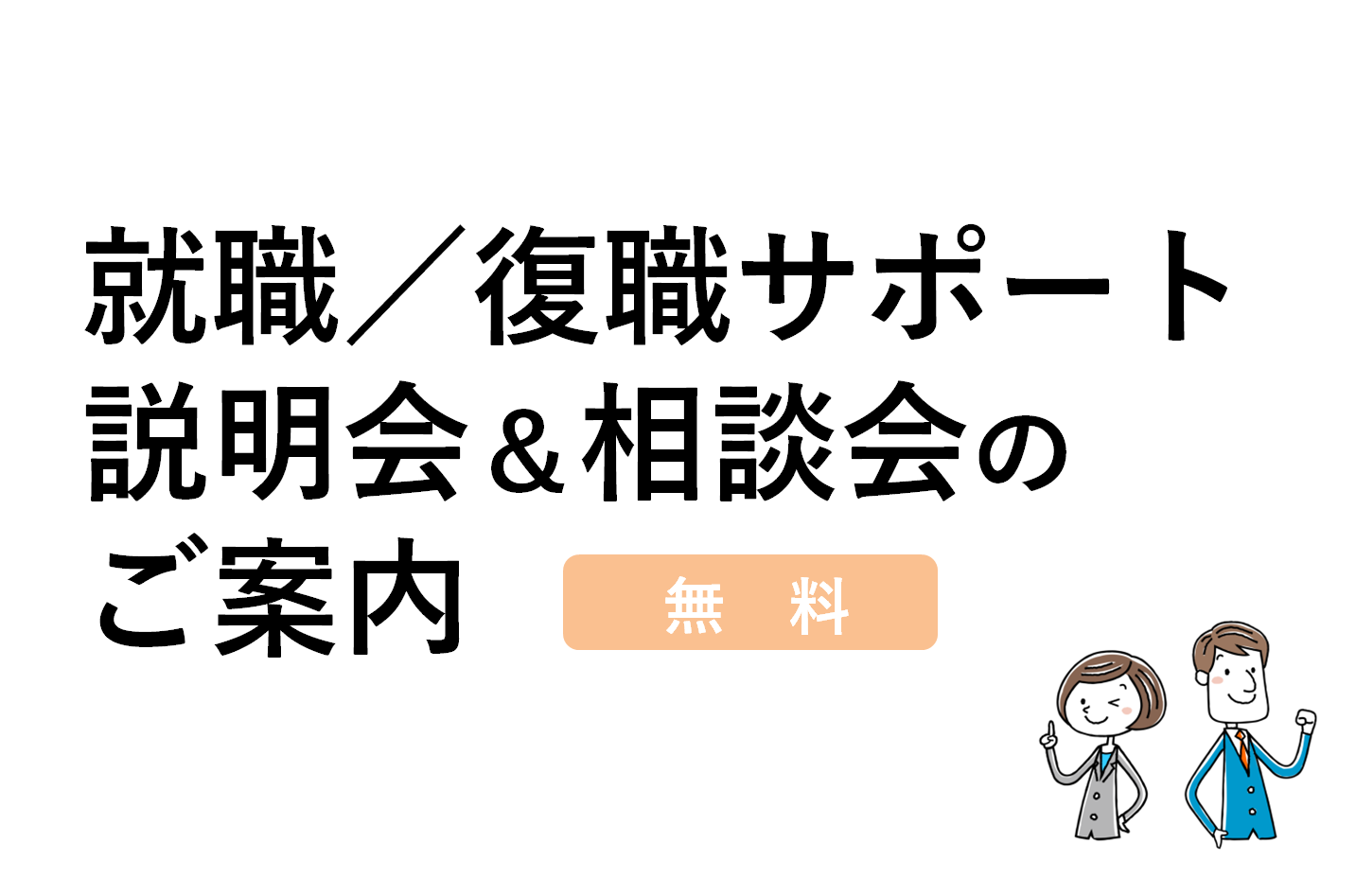 リヴァトレ仙台では、うつ病や双極性障害・適応障害・不安障害などの精神疾患によりお仕事から離れている方を対象とした、「就職/復職サポート説明&相談会」を実施します。