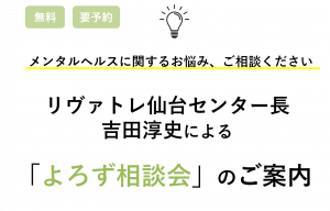【リヴァトレ仙台】センター長・吉田淳史による「職場のメンタルヘルスに関するよろず相談会」のご案内